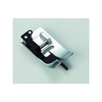 Le pied réglable pour ourlets invisibles HUSQVARNA VIKING peut être déplacé latéralement pour régler la quantité de tissu pris par le point d’ourlet invisible.
