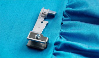 Ce pied convient particulièrement au fronçage lors de la couture de jupes froncées, empiècements, poignets, volants de jupe, etc. Ce pied convient également à l’assemblage de deux épaisseurs de tissu et au fronçage du tissu inférieur en une opération.